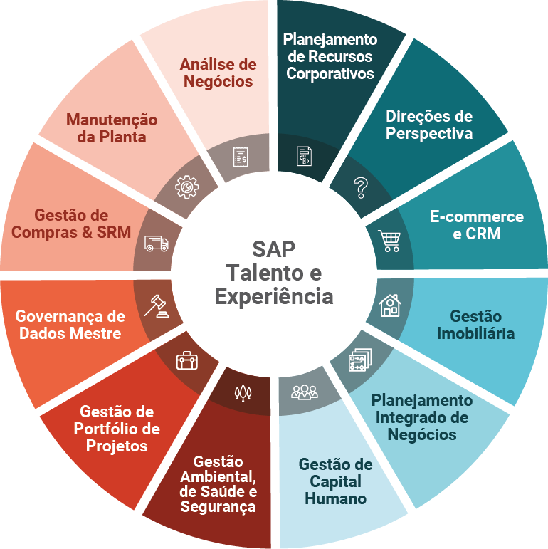 Somos certificados em SAP Ariba®, SAP® SuccessFactors®, SAP® IBP, SAP CX, SAP S /4HANA®, SAP Master Data Governance, SAP Environment, Health, Safety Management, SAP Plant Maintenance, SAP Portfolio and Project Management, SAP Business Planning and Consolidation e outros SAP® soluções.